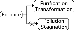 The Furnace has two functions – Purification and Transformation. These two processes happen concurrently. They represent an ongoing feedback loop - each augmenting the other. The opposite processes are Pollution and Stagnation. These two mechanisms also feed off each other. Each path is possible at any time. The more we choose a particular path, the more likely we will choose it again. If we frequently choose the positive cycle, we are more likely to choose it again. Each event or experience slightly nudges our Behavior Probability vector towards the Path or away from it.
