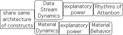 Data Stream Dynamics has many obvious parallels with traditional material dynamics in that they share a similar architecture of constructs6. Just as scientists employ traditional dynamics to explain material behavior, DSD provides significant explanatory power regarding living behavior, especially the rhythms of human attention.