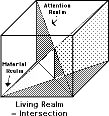 The above visual metaphor has at least one major flaw. It represents the interactions as intersections between two planes. This does not capture the interactive feedback loops that are characteristic of the Realm of Attention in particular.