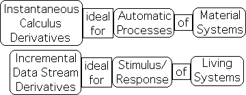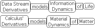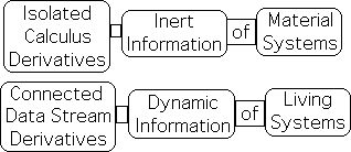 Calculus produces isolated derivatives, hence inert information, that is appropriate for material systems. The dynamic information of data stream derivatives is ideal for living systems.
