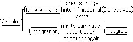 Calculus is the mathematics of change. Calculus has two basic processes, differentiation and integration. The first, differentiation, breaks a continuous line into infinitesimal parts, derivatives. Because these derivatives are infinitely small, they represent instantaneous rates of change. Differential calculus, one branch of this immense topic, contains many complicated mathematical processes designed to compute derivatives, these instantaneous rates of change.