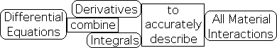 Differential equations, another branch of calculus, combine derivatives and integration in one equation. Scientists employ differential equations to describe all material interactions.