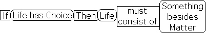 The next conclusion is equally necessary. If living systems are able to exercise choice between alternatives, then they must consist of something in addition to matter. Aaaeeiiii! The dungeon creatures rattle their chains, screaming for freedom, as the Establishment hires more guards.