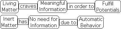 And this is the point. We humans, as well as many other life forms, thrive on meaningful information. We crave information concerning our environment to fulfill potentials, including survival. Further all the significant human pursuits mentioned above are also based in the transfer of meaningful information from one individual or group to another. This is in direct contrast to exclusively material systems. Because it behaves automatically, inert matter has no use for information.