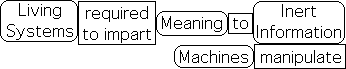 This discipline does not include the meaningful information that interests us. Machines, such as computers, only employ and manipulate inert information. Living systems are required to impart some type of meaning to inert information. Put another way: without Life to impart meaning, information remains inert.
