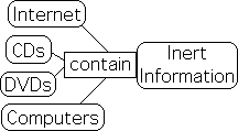 For example, the information contained in electronic form in CDs, DVDs, and the Cloud is inert. It is useless, unless it is first translated into some type of sensory information, for instance sound. This sensory information is equally useless, unless there is a sensory organ to translate the information into an understandable form, an ear for instance. Further, even the sensory information remains garble unless we somehow impart meaning to this inert information. Witness the sleeping human or someone in a coma. The senses might be operating on minor level, but there is nothing to invest the information with significant meaning.