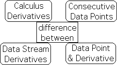 In summary: derivative are rates of change: change of location over the change in time. The derivatives of calculus, which apply so well to the behavior of inert matter, are continuous and isolated from the past. Data stream derivatives, which apply so well to the behavior of living matter, are discretized and intimately connected to the past.