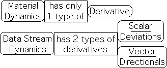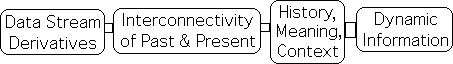In other words, the mathematical processes of calculus create derivatives that are isolated from each other and the past. This isolation is especially appropriate to material interactions, which seem to be based solely upon the automatic processes of differential equations. In contrast, the mathematical processes that produce data stream derivatives are especially designed to connect the past with the present in an ongoing fashion. Besides remaining in the finite realm, data stream dynamics relates the current moment with past moments.