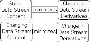 Let us summarize the significant divergences between the derivatives of matter and information digestion. The derivatives of calculus are based upon the difference between consecutive data points, while data stream derivatives are based upon the difference between the data point and the most recent derivative.