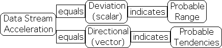 The acceleration of the data stream, as computed by the Living Algorithm, has 2 components - a scalar and a directed component. The scalar component of the data stream's acceleration also represents the Deviation of the data stream. It indicates the probable range of the next data point. The directed component has been deemed the Directional of the data stream. It indicates the probable tendencies of the next data point.