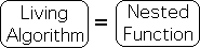 To better understand the concept of a nested function, let us look at the mathematics. The simplest form of the Living Algorithm shown above can be written in the following form. The data stream's current velocity/average is a function of the current point in the data stream XN and the previous average.
