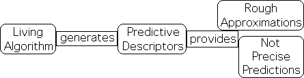 If the predictive descriptors only provide rough approximations, what is the scientific relevance of the Living Algorithm's computational process?