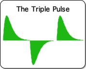 Yet another feature of the Pulse bears mentioning. The Pulse fades out permanently, as long as the Number String continues. The only way to 'refresh' this Pulse is to follow the first Number String with a Number String that has a different essence. The ensuing Number String must be of sufficient duration to completely refresh the first. The graph at right is a visualization of the acceleration of a data stream consisting of a Number String of 1's followed by a Number String of 0's, and then a Number String of 1's. This intriguing data stream acceleration has been deemed the Triple Pulse.