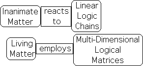 This dichotomy between logics illustrates another difference between Life and Matter. Matter merely reacts to the laws of Linear Logic. In contrast, Life must actually employ Matrix Logic to survive. These multi-dimensional logical networks are stable enough to grow and provide effective strategies for survival.