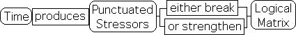 The same analysis holds for Matrix Logic. Time inherently generates punctuated stresses. As anti-fragile systems, each stressor makes the logical matrix stronger. As the matrix gets stronger, this simultaneously increases the longevity of the metaphoric system or redundancy network.