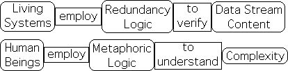 While humans in particular rely upon Metaphoric Logic to form abstractions, living systems in general rely upon Redundancy Logic to form a stable conception of their environment. Our five senses provide a great example. Each sense generates a different type of information. Yet we blend these signals to stabilize our understanding.