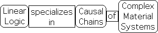 Due to Matter’s relative simplicity, it is possible to identify causal chains. The Linear Logic of Deduction and Induction specializes in causality. If this happens, then that happens, by necessity. Modern technology is based in the precise causal chains of material systems.
