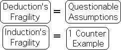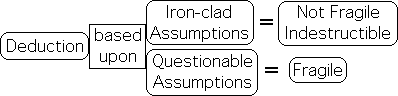Don’t get me wrong about the linear fragility of Deduction. If the assumptions are ironclad and the reasoning is sound, then the conclusions are indestructible. Tightly defined mathematical proofs are of this variety. The results are true in every time and place forever and ever. Amen.