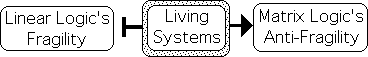 In contrast, the logical matrix is anti-fragile, as stress makes the network’s conclusions ever stronger. Time regularly tests the inferences of this logic, which results in constant refinements to the system. Unable to depend upon the fragility of linear logic, living systems must instead rely upon the anti-fragility of matrix logic to draw more dependable time-tested conclusions.