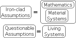 It is possible to make unchallengeable assumptions in both mathematics and material systems. However, due to interactive feedback loops, it is impossible to make these same inviolable assumptions regarding living systems. Assumptions are always provisional in that they are dependent upon a dynamic context, for instance the ubiquitous yet dynamic appetite. The questionable nature of the assumptions result in equally questionable conclusions on the part of Deduction.