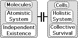 Cells, the building blocks of Life, are holistic systems. The parts, for instance organelles and membrane, can only be understood in relationship to the whole. The organization is top-down – with survival governing molecular behavior.