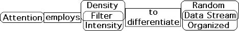 What techniques does Attention employ to provide Life with only meaningful information? Remember, Life is Attention's boss and Attention's tool is the Living Algorithm. Life’s sensory apparatus takes in raw data streams from the environment. The Living Algorithm can digest each and every one. Her digestion process creates many measures. Attention only needs to focus upon two of these measures – a data stream's intensity and density. Both the intensity and density of random data streams are significantly lower than organized data streams. By focusing upon these measures, Attention is able to differentiate random from organized data streams.