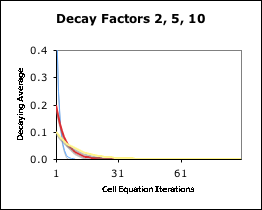 Besides the basic operations of arithmetic, the only remaining element in the Living Algorithm that is unaccounted for is D, the Decay Factor. D plays a significant part in the Living Algorithm process, but is unaffected by it. Because D's value is independent of the process, it has no subscript. D's sole function is to act as a scaling factor to the rate of change. The rate of change is the difference between the incoming Raw Data and the Past Average.