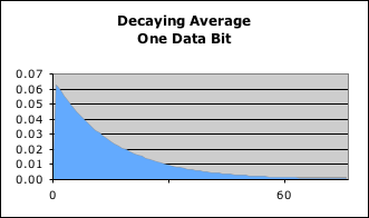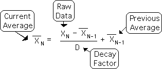 As implied by the name, D determines the rate of decay. When D’s value is large, the impact of the Fresh Data on the System is minimized. When D’s value is small, the impact is maximized. Accordingly, D, the Decay Factor, determines the impact of the incoming data upon the New Living Average. The slower the rate of decay, the less the impact of the New Data and vice versa. Decay Factor Up; Impact Down.