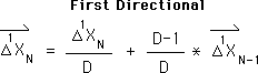 When the superscript is greater than one (P > 1), we get equations for the subsequent Generations. These are the Liminals. As an example, below is the equation for the 2nd Directional. For clarity, this is the 2nd generation of the Living Algorithm's Family, the Grandchild of the Living Average and one of the Liminals.