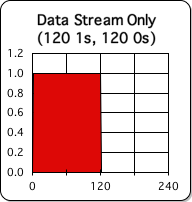 The data stream that generates the graph at the right consists of 120 1s followed by 120 0s. Accordingly, the limits of the data stream space are 1 and 0. If the duration between each segment is one minute, it would take 240 minutes (2 hours) to complete the graph. However, neither the red block of 1s, nor the invisible block of zeros moves through time; they just are. It makes no sense to talk about motion.