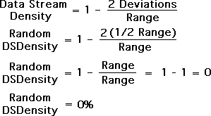 In contrast, because the Deviation of a random number stream (or noise) is high relative to the Range, the Density of a random number stream is very low. Deviation up; Density down. Because the Density is low, the random number stream has very little Energy to change the System. As the Density of the data stream approaches 0%, it has less and less substantiality. This is as it should be.