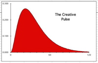 This model was originally chosen to represent an uninterrupted creative session. Due to the many patterns of correspondence between the Pulse and a productive session, the original name of this flowing curve was the Creative Pulse. It was much later that he realized that this name was both misleading and limiting. Instead of only applying to creative sessions, this mathematical model seems to apply to a broad and significant range of human experience. And instead of being related only to creativity, the mathematical pulse seemed to be related to a natural attention span. It was further supposed that this natural attention span, when uninterrupted, laid the foundation for a productive and creative session. In other words, the mathematical curve shown above seemed to be more related to attention and less related to creativity. With this realization, the name was changed from the Creative Pulse to the Pulse of Attention.