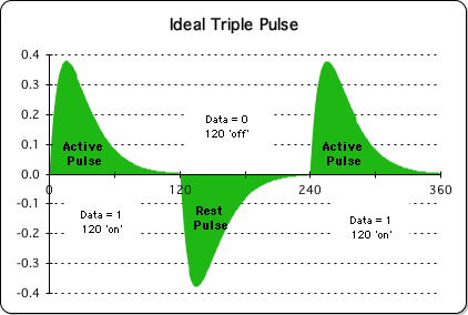 The Triple Pulse is a result when the Living Algorithm digests a specific type of data stream. The standard sequence consists of an uninterrupted string of 120 ones, followed by an uninterrupted string of 120 zeros, followed by another string of 120 ones. The number string of 1s is associated with the Active Pulses, while the number string of zeros is associated with the Rest Pulse.