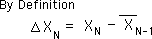 B4. Summarizing, the Number String data stream consists solely of As and the System starts at 0. Let's see what happens Living Algorithm's Living Average digests this data stream – point by point. We begin the process with the 1st data point, X1. Substituting X1 for XN in the Living Average's operable equation (Eq. A4) yields the following expression.