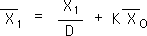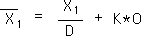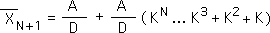 B6. Zero multiplied by any term equals 0. As such, the last term drops out of the equation. Employing our knowledge that all the Data points equal A (Eq. B2) yields the following result. The first Living Average, X1 bar, always equals A/D: A, our information packet, whatever it consists of, divided by D, the Decay Factor.
