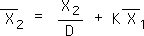 C5. Equation B9 provides the values the prior Living Average and Directional, X1 bar and X1 arrow. Plus all the data points, hence X2, equal A. We perform to substitutions to get the following expression.