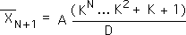 E8. The above expression is the Living Average for any data stream. In this discussion, we are only interested in the Number String data stream, where all elements, XN, equal A. As such, XN+1 also equals A. For the purposes of this proof, we have assumed that Equation E2, a general expression for Number String's Living Average (XN bar), is true. We make these substitutions (A for XN+1 and Equation E2 for XN bar, to obtain: