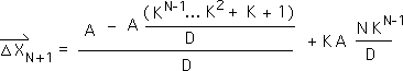 E5. Now let's see if our general expression can satisfy the second condition: 'if Q(n) is true then Q(n+1) is true'. Our Q(n) is the Number String's Living Average of the Nth point, XN bar (Equation E2). We assume this expression Q(n) to be true. Does Q(n) imply that Q(n+1) is also true? If it does, then the following equation must be true, because this is the expression for the N+1 point, Q(n+1), in the number series generated by the function Q(n). Let's see if the underlying logic of the function generates the following equation.