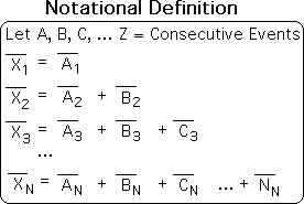 In the algebra that follows, we will employ this alphanumeric schema to refer to the individual info quanta. Excel employs a similar alphanumeric schema to label its spreadsheets – letters for columns and numbers for rows. Otherwise there are too many confusing numbers. The implied meaning is that the letters also have a number associated with them. For instance, in the Excel spreadsheet Column D is the 4th column and column AA is the 27th column. Similarly, Event D is the 4th event of the data stream.