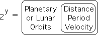 What is the relevance? By reversing the initial logarithmic process, we are able to convert y’s value into the standard dimensions one would find in a book of tables. In other words, if we raise 2 to the y power (2y), the result is a fairly good approximation of our empirical data regarding orbital distance, period and velocity. While far from perfect, it indicates that many orbital values are excluded from consideration, i.e. quantized.