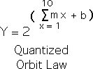 Our graphs have demonstrated fairly conclusively that the multiple orbits of planets or moons in spinning gravitational systems of our Sun are quantized with respect to distance, period and velocity. This fairly definitive conclusion was based upon the high correlation, generally over 99%, between Planetary/Lunar Order and the three aforementioned orbital features. Due to the presumed prevalence and relative certainty of this phenomenon, we have extravagantly deemed this the Quantized Orbits Law. Let us now write an equation that clearly exhibits the quantized nature of planetary and lunar orbits.