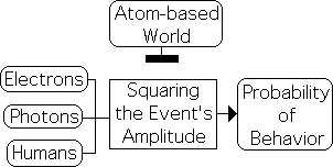 Note: our atom-based world does not need to rely on probability. As mentioned, scientists can precisely determine the position and trajectory of a single atom. In other words, there is no uncertainty when it comes to the atom. In contrast, the behavior of the disobedient subatomic entities, both the electron and photon, is based in probability. In similar fashion, the behavior of humans is also based in probability. The same equation is employed to determine the behavior probability of the electron, photon, and human – squaring the amplitude of the event.