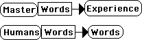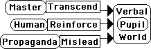 The average Human uses words to communicate words - to reinforce the Verbal world. In contrast, the Propagandist uses words to manipulate the Verbal reality for his advantage. Only the Master attempts to use words to transcend words -> to point to the experiential world behind the verbal one.