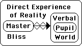 The Master knows that the Word Filters of the Verbal World block the Direct Experience of Reality. Thus he attempts to strip this Verbal world away in anyway he can. Unfortunately the Pupil thinks that his Verbal world is Real and so fights back. Inevitably, or at least frequently, the Master realizes that simply pointing to the Experience is not enuf, because the Verbal Jail, which has been self constructed with a little help from friends, family and culture, is so strong that it deflects any suggestions which point beyond the petty world of Words. At this point the Master understands that he must use Words to deconstruct the Verbal Box which surrounds much of Humanity blocking them from the Bliss of Being.