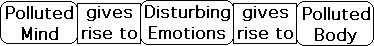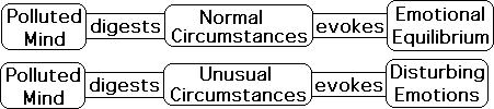 Under normal circumstances, even the Polluted Mind can remain in a state of relative equilibrium. However, Life's circumstances inevitably evoke disturbing emotions from the Polluted Mind. This upsets the balance, increasing the probability of corrupted behavior. In contrast, the Pure Mind is much less likely to respond with the same destructive emotions.