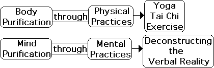 Both Mind and Body must be Purified. Practicing self-cultivation is the method. Body purification occurs through physical practices, as the Body is physical. Mind purification occurs through mental practices. The primary mental practice is uncovering misconceptions and underlying assumptions. This is known as Deconstructing the Verbal Reality. This is one of the major preconditions for spiritual growth and transformation. It is the main topic of this Book. Read on if this interests you.