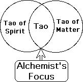 With the passage of time, it became apparent that there are many parallels between the taos of the internal and external worlds. Alchemists, at least in the context of this work, are those that explore the parallels between the external and internal taos of Matter and Spirit. The intersection or union of the two perspectives could be called the Tao. As such, the Tao is the focus of the Alchemist's attention.
