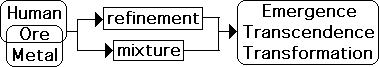 Applying this special feature of the Tao of Matter to the Tao of Spirit, the Alchemists hoped to go through a personal transformation - a human Emergence. They recognized that this transformation process was not accidental. Unless tin and copper ore went through specific processes, i.e. refinement and mixture, they remained useless ore, never becoming Bronze. In like manner, humans remain common ore, unless they go through the same processes, refinement and mixture. Essentially if the unrefined metal ore or the unrefined individual doesn't go through certain procedures, they do not realize their potentials. They do not go through transformation or achieve emergent properties.