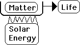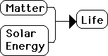 To better understand the meaning of the function of the Circle, we will modify our first diagram. Where the first showed the addition of Energy and Matter, this shows that the Solar Energy cooks Matter. Cooked Matter becomes Life.