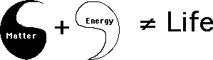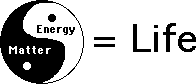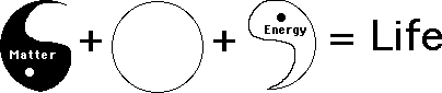 This diagram, many times called the Yin/Yang symbol, shows a black and white fish swimming around each other - Showing the interconnection of Matter and Energy - Rather than the linear relation suggested by simple addition. Perhaps we should call it a multiplication or crossing, a mixture. Matter mixed with Energy yields Life.